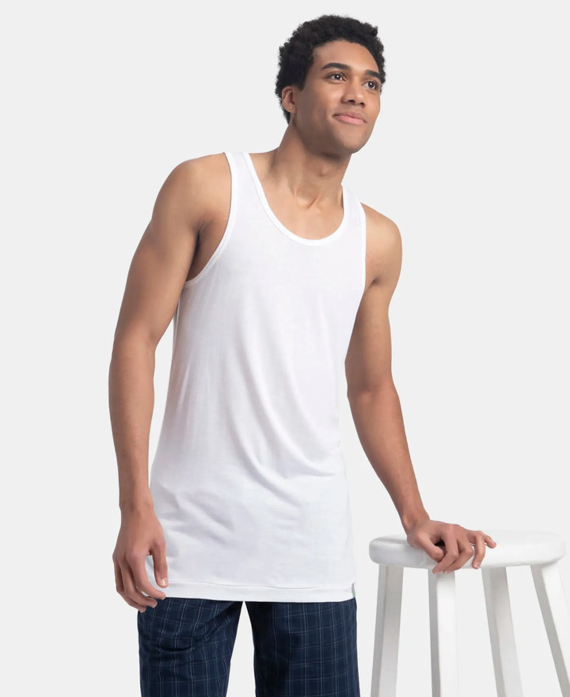 Bamboo And Tencel Modal Blend Sleeveless Vest With Extended Length - White